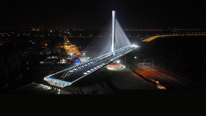 54分鐘,3萬噸巨無霸華麗轉(zhuǎn)身(浙江日報2025年11月27日8版錄用).pdf記者 郁馨怡 通訊員 蔣雯霞 王康11月26日凌晨,經(jīng)過54分鐘的平穩(wěn)旋轉(zhuǎn),嘉興市區(qū)快速路環(huán)線三期二階段涉鐵段項目的獨塔斜拉橋順利完成精準轉(zhuǎn)體——在距離嘉興東站7股鐵路線上空約16米處,它以自身中點為中心順時針平轉(zhuǎn)40.6度,與原本被鐵路分隔的快速路高架能夠順利銜接,為后續(xù)項目建設...