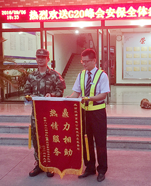 杭浦高速公路杭州北收費(fèi)站作為杭州市主要入城口之一,G20峰會(huì)期間承擔(dān)著保障與會(huì)政要、嘉賓高速出入安暢的重任。身為收費(fèi)所所長(zhǎng),朱卿深知責(zé)任重大。他以“高標(biāo)準(zhǔn)、高要求”為工作指導(dǎo)思想,積極投身收費(fèi)站綜合整治工作,每天親臨現(xiàn)場(chǎng)督促收費(fèi)站周邊物流企業(yè)拆違進(jìn)度,主動(dòng)承擔(dān)安檢站施工期間的后期保障服務(wù),確保了各項(xiàng)施工按時(shí)順利完成。他主動(dòng)放棄節(jié)假日休息時(shí)間,全心撲到收費(fèi)站窗口服務(wù)提升工作中。小到女員工佩戴的絲巾等配飾采購(gòu),大到各國(guó)政要通行安全保暢工作部署,都能看到他忙碌的身影。他克服各種困難,多方協(xié)調(diào),為執(zhí)勤武警官兵提供了整潔的居住環(huán)境、周到的后勤服務(wù)和貼心的日常幫助,確保了武警官兵圓滿完成安保執(zhí)勤任務(wù)。收費(fèi)所的付出獲得了武警官兵的一致好評(píng),安保任務(wù)結(jié)束后特地送上“熱情服務(wù) 鼎力相助”錦旗表示感謝。