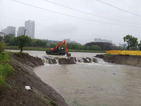 據了解,按原設計方案,新建虹海橋跨海鹽塘河道采用分幅圍堰交替施工方式進行,施工工期須20個月,這對快速路整體工程進度產生較大影響。為滿足工期要求,同時確保工程實施過程中不降低城防排澇標準,快速路公司聯合水利局、港航局等部門,多次組織設計、施工、監理等單位進行論證和研討,最終確定了海鹽塘臨時導流方案。即采用海鹽塘河道全截斷式圍堰施工,在虹海橋圍堰以北海鹽塘東側臨時3號箱涵位置進行開挖導流,使海鹽塘與植物園內自然生態河道連通,以滿足海鹽塘樞紐在汛期排澇所需過水斷面,此舉將虹海橋施工周期縮短約至14個月。