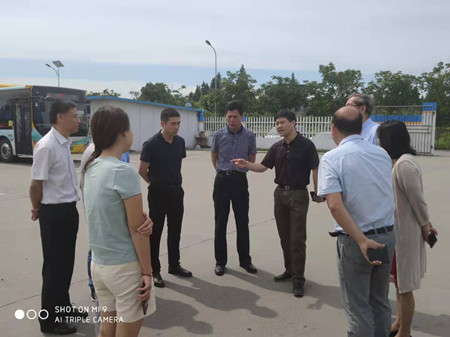 7月31日上午,省交通運輸廳副廳長蔡洪、運輸處處長戴英一行到新塍鎮公交停車場實地調研省際公交開行情況。市交通運輸局局長顧國強、副局長王立方,市運管局副局長傅學練,秀洲區交通運輸局局長金旗明及國鴻公交相關負責人等陪同調研。