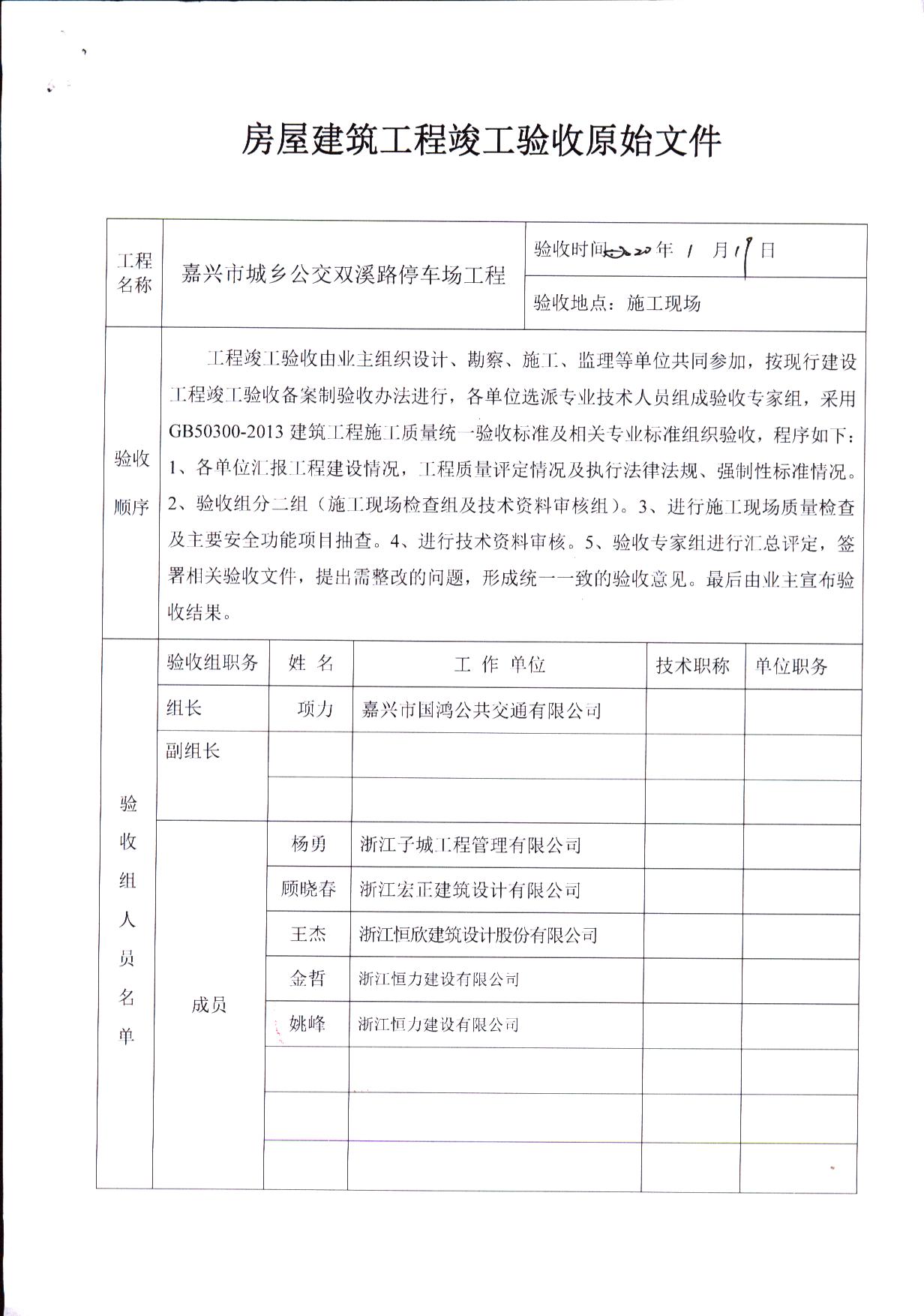 嘉興市城鄉公交雙溪路停車場項目竣工驗收文件